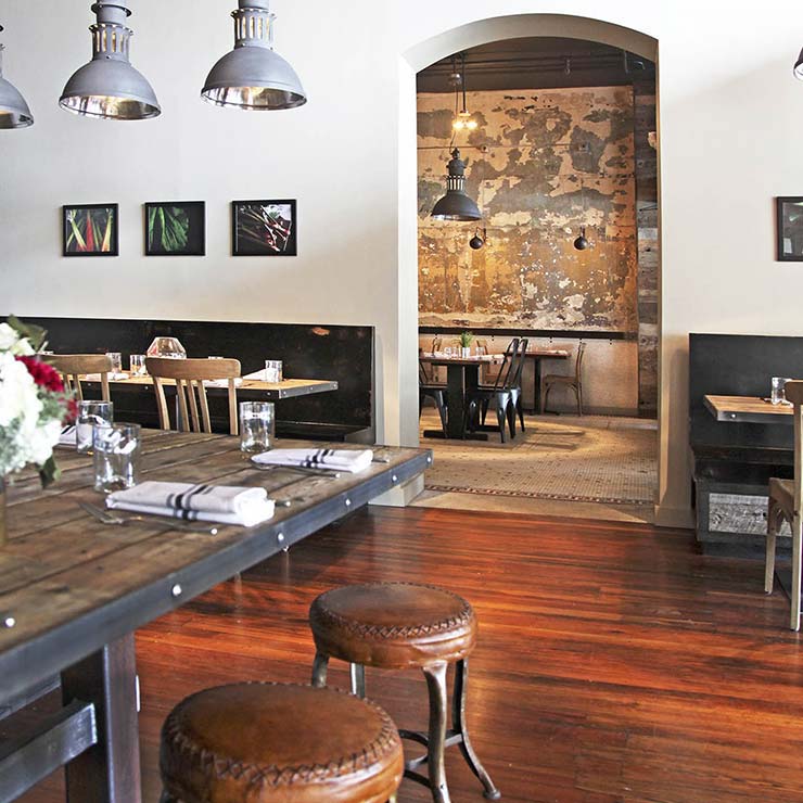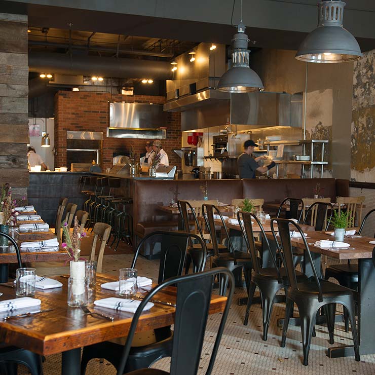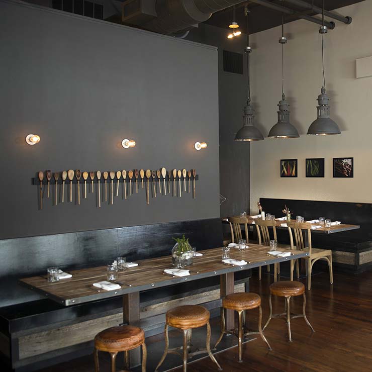Beverly-Grant renovated and restored a vacant restaurant space into what is now Rhubarb. Located in the heart of downtown Asheville, scope of work included a new kitchen equipment package complete with a European wood fired oven, restoration of historical wood floors, and extensive barn wood trim accents.