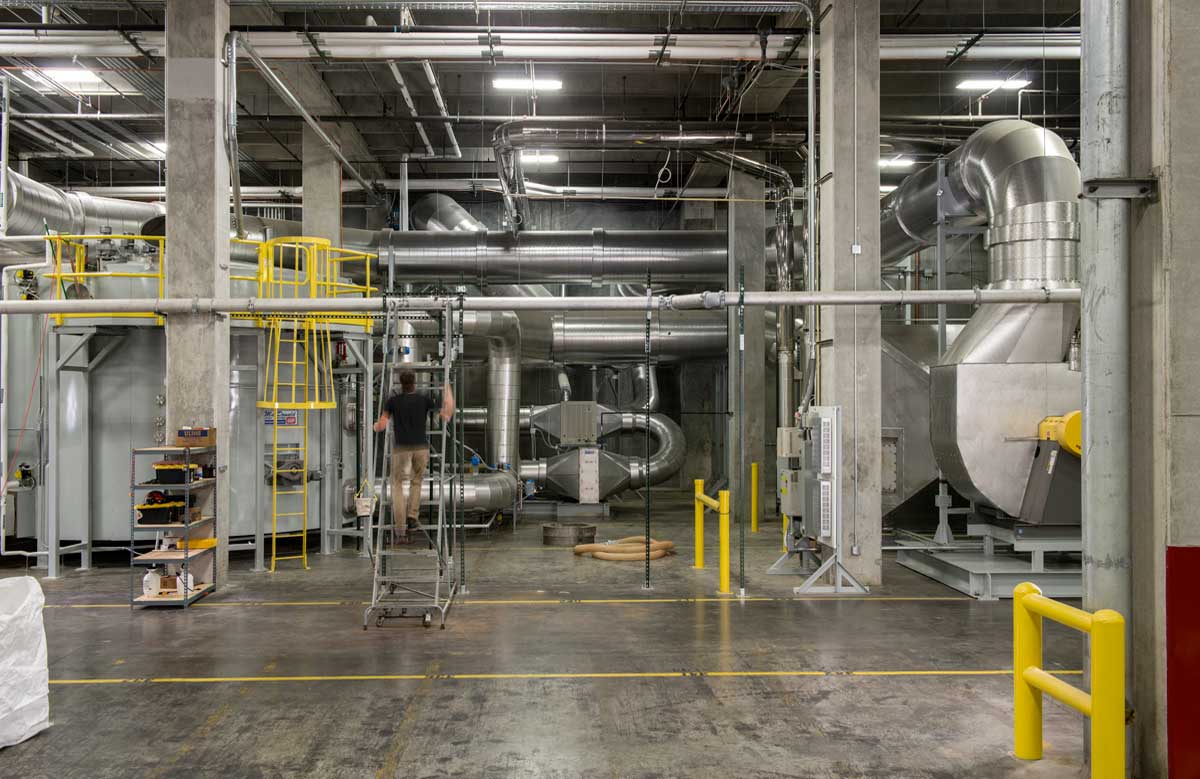 The existing 60,000 square foot facility, former home to Gerber Baby Food, was converted into a state of the art and first of its kind craft malting facility. Supporting the exploding craft beer scene in Asheville, NC, Beverly-Grant worked alongside the design team to integrate automated malting lines consisting of water storage and filtration, steep tanks, 10-ton germination kiln vessels, a 5 million BTU furnace, vacuum and packaging system line, and a highly customized ductwork system to support the drying process. The project team integrated with MacDonald Steel Limited from Ontario, Canada to coordinate complex utility systems allowing Beverly-Grant to install the custom equipment pieces upon delivery. Riverbend’s capacity grew from 300,000 lbs./year to 3,000,000 lbs./year with further expansion capabilities in excess of 12,000,000 lbs./year. The completed project finished on schedule and under budget, with a guaranteed maximum price (GMP) of $1,634,574 and an actual cost of $1,595,574.